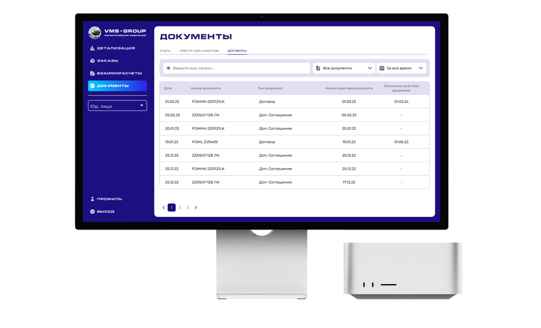 Клиент — крупная логистическая компания VMS-Group. До начала работ заказчики сталкивались с недостаточной прозрачностью: клиенты не могли в онлайн-режиме получать информацию о статусе своих грузов и текущих расчётах, что вызывало их недовольство и перегружало кол-центр многочисленными звонками. В рамках проекта была поставлена задача разработать с нуля современное веб-решение — личный кабинет клиента с глубокой 1С-интеграцией и интуитивно понятным интерфейсом.